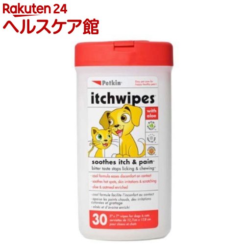 ペットキンはカリフォルニア発の歴史あるペットブランド。【痒いところをなめなくなる】マイクロファイバーシートはウェットティッシュのように引っ張って取り出すシートタイプで、取り出したシートを患部に塗って使用します。